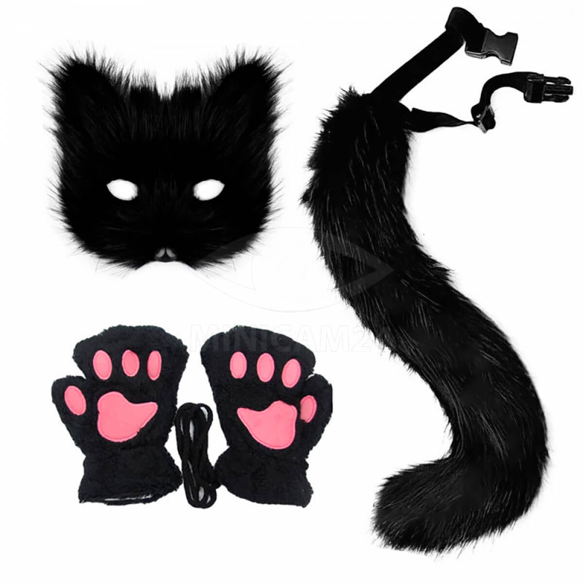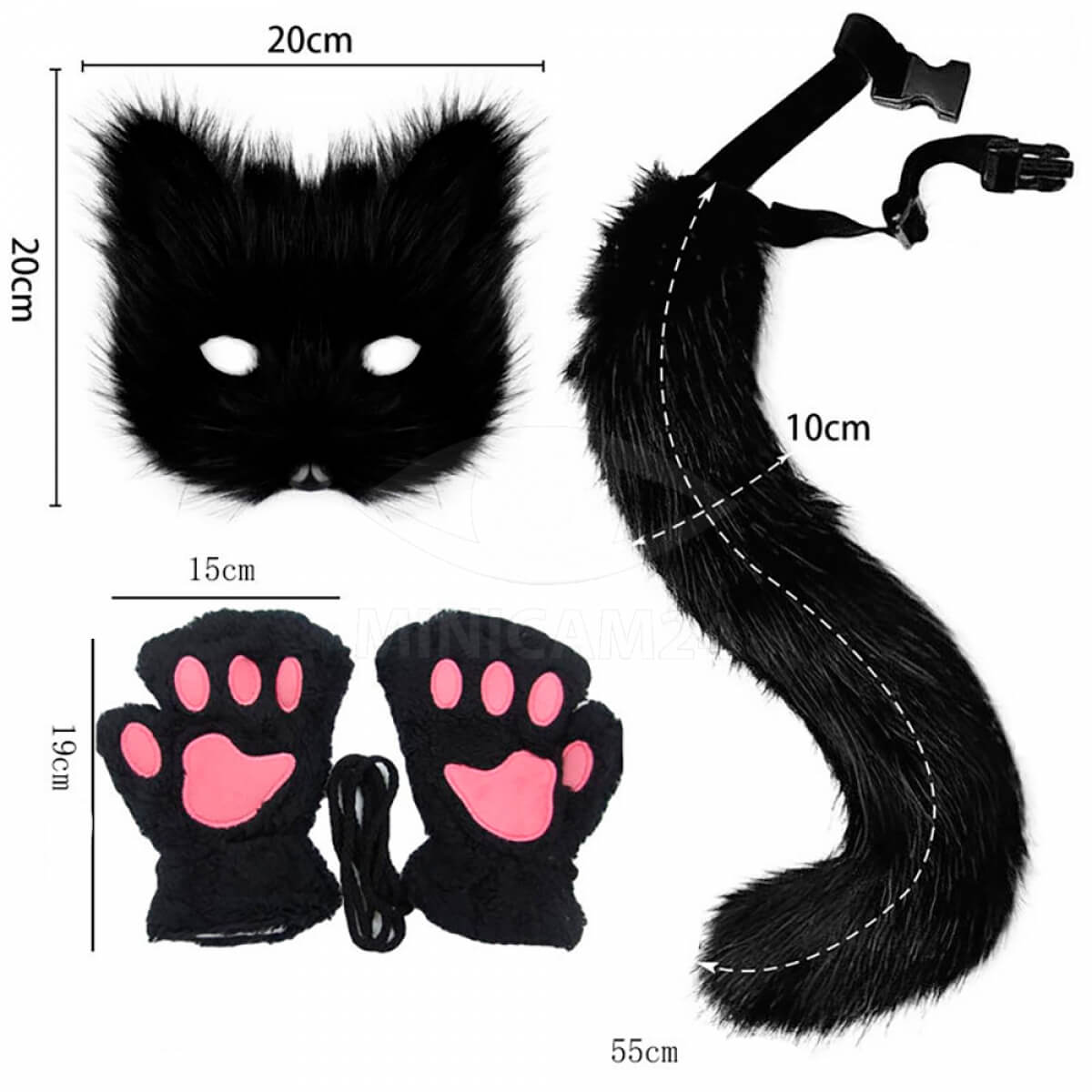 Маска кошки крепко фиксируется на голове с помощью эластичной резинки, обеспечивая комфорт и уверенное прилегание. Перчатки-лапки с мягким и пушистым дизайном защитят ваши руки и добавят веселого настроения вашему образу. Хвост кошки с проволокой легко приобретает нужную форму, придавая вашему костюму еще больше реалистичности.