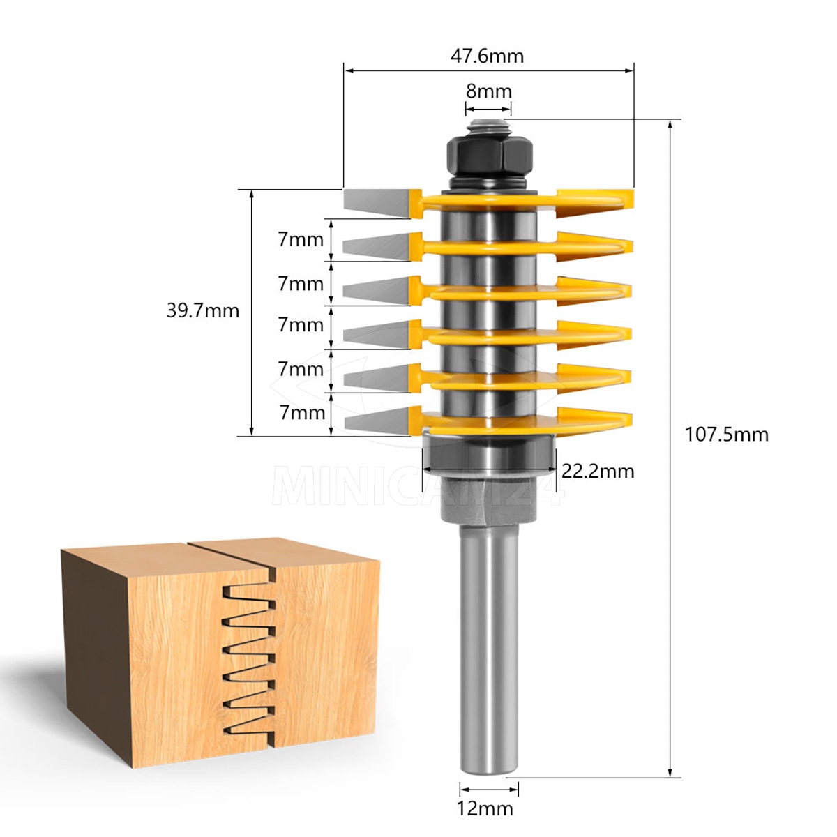 Фреза с трапециевидным соединением пальцев, хвостовик 12 мм.